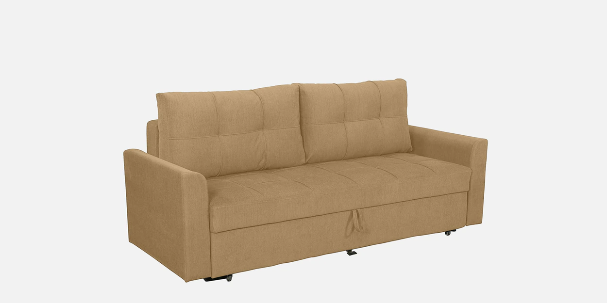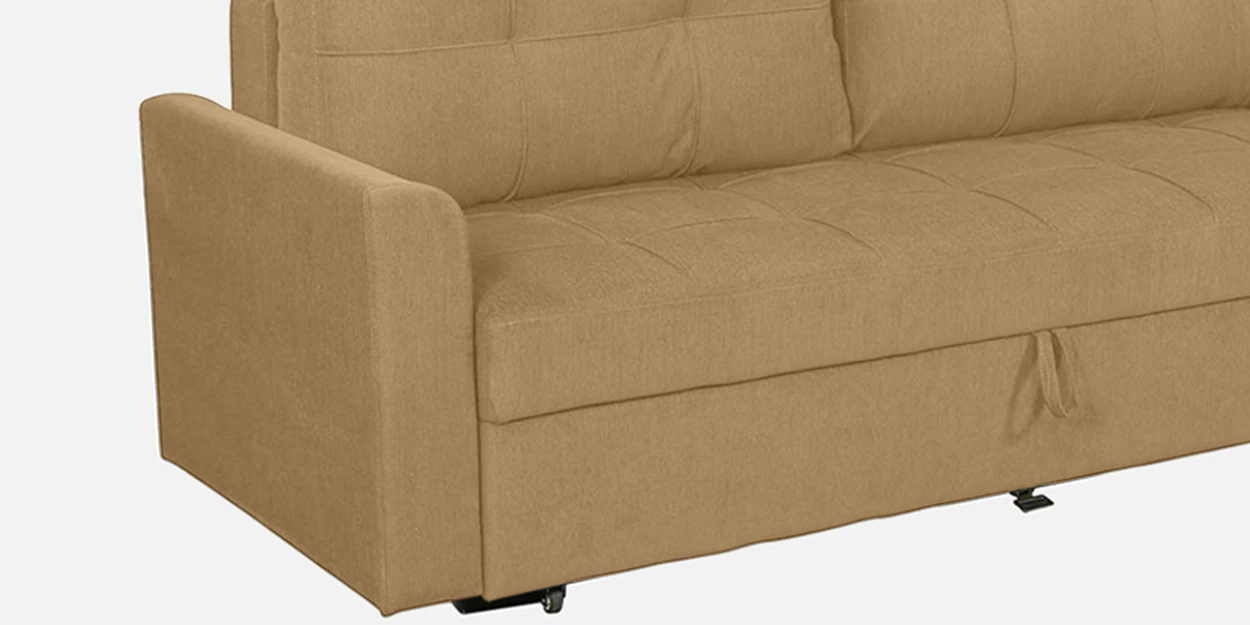 Ines Suede Fabric Pull Out Sofa Cum Bed In Beige Colour With Storage